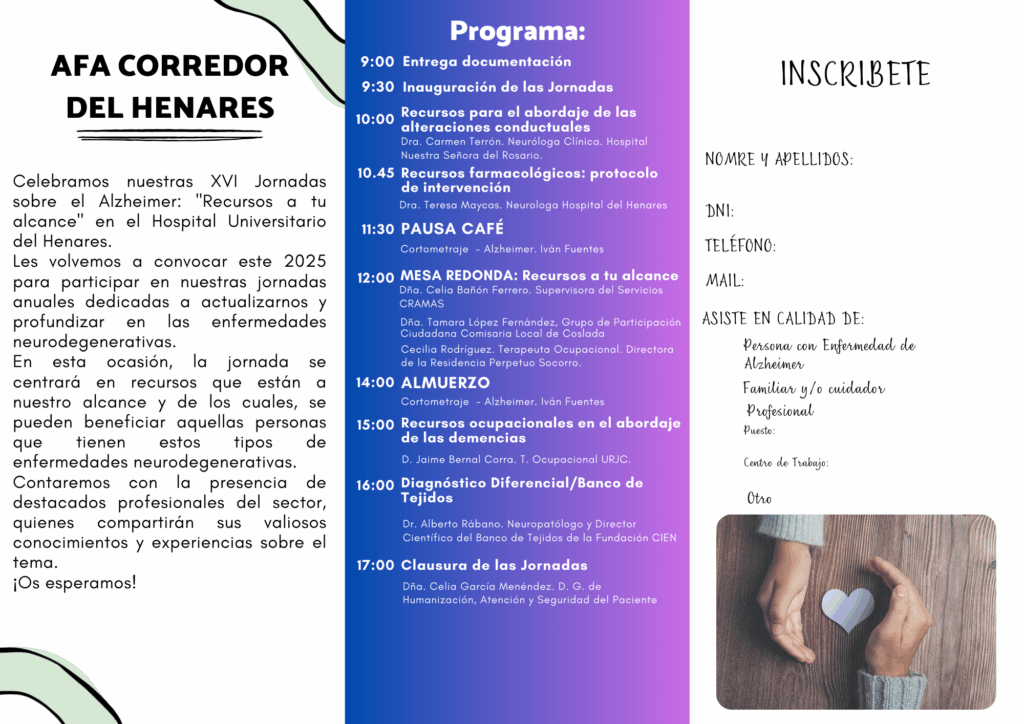 AFA Corredor del Henares organizó unas jornadas sobre Recursos a tu alance el 18 de septiembre en el Hospital del Henares.